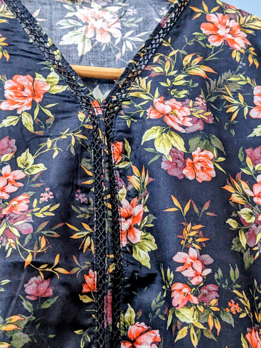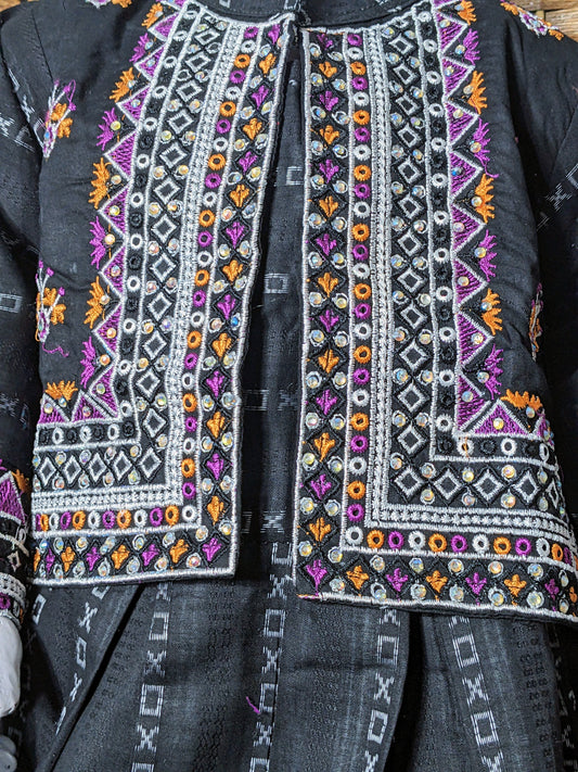 Girls black fully embroidered cotton focks with trouser