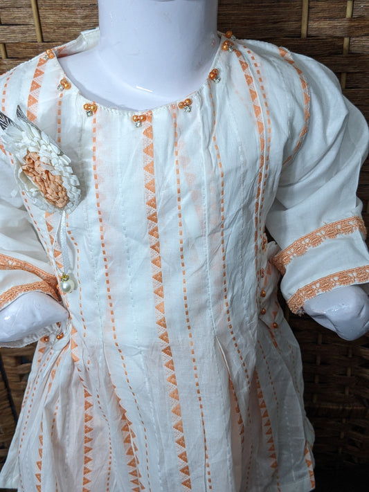 Infant merjanda hand embroidered cotton kurta with white trouser