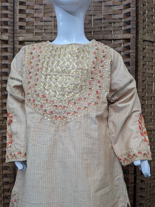 Girls beige fully embroidered kurta with shelwar