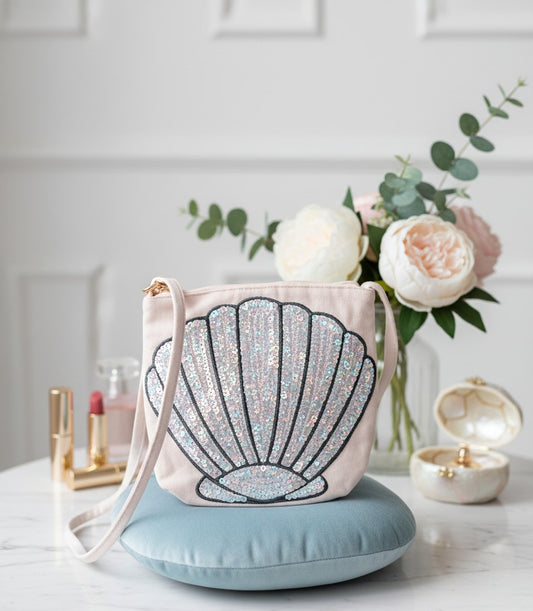 Girls' shimmery sea shell-shaped motif pink bags